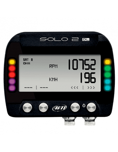 AIM SOLO2 DL LAP TIMER GPS es un cronómetro automático basado en tecnología GPS. Localiza su posición GPS, identifica la pista de la lista interna de las principales pistas del mundo y comienza con el recuento automático de los tiempos de vuelta.