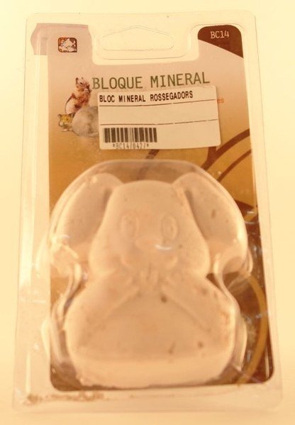 Bloque mineral para roedores. Contiene 11 minerales indispensables para la correcta alimentación y salud de los roedores.