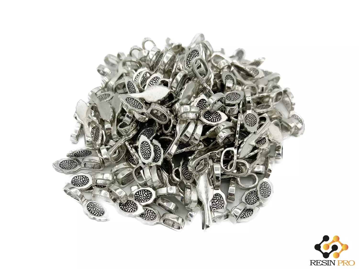 Kit de 100 conectores plateados para convertir tus piezas de resina en colgantes o llaveros, ideal para crear tus regalos hechos a mano o crear una colección de joyas para tí o para venderlas!