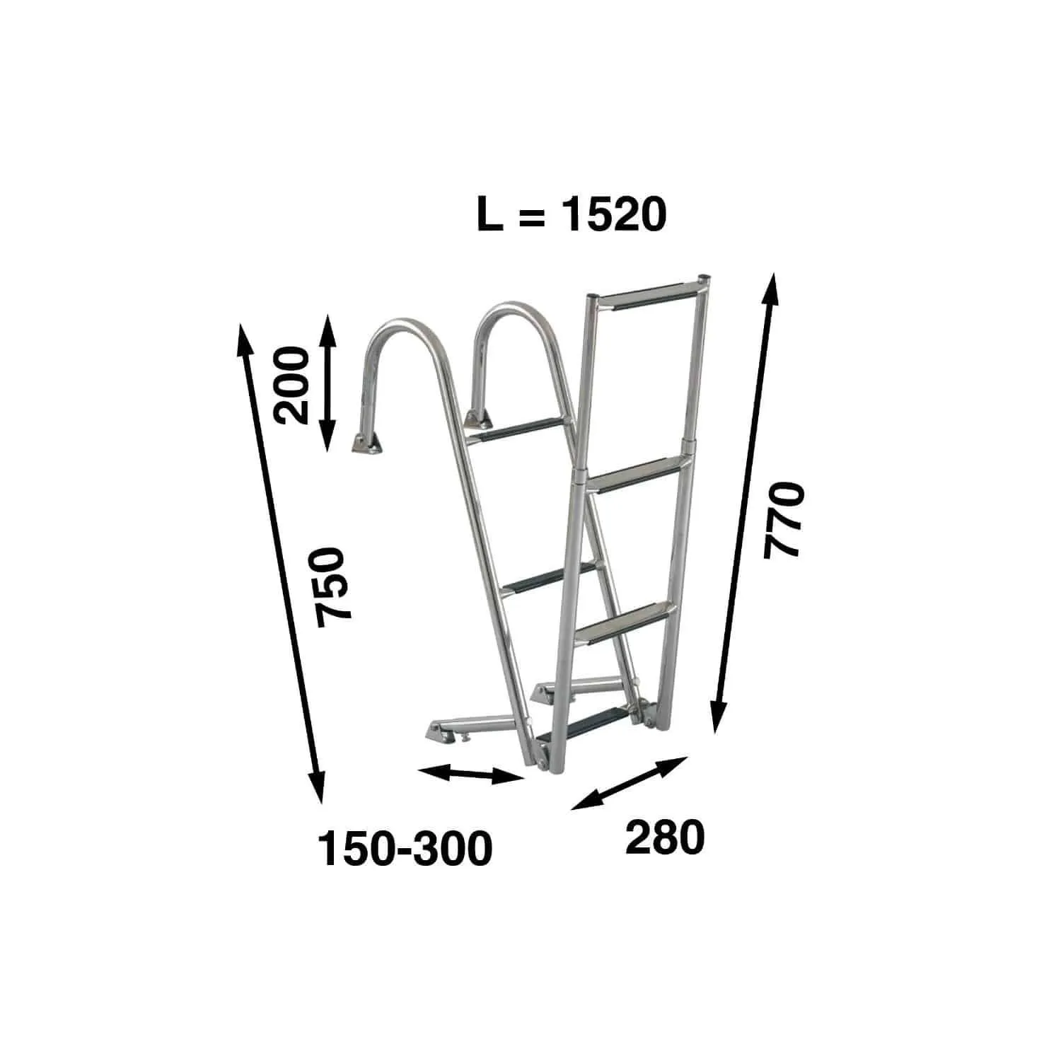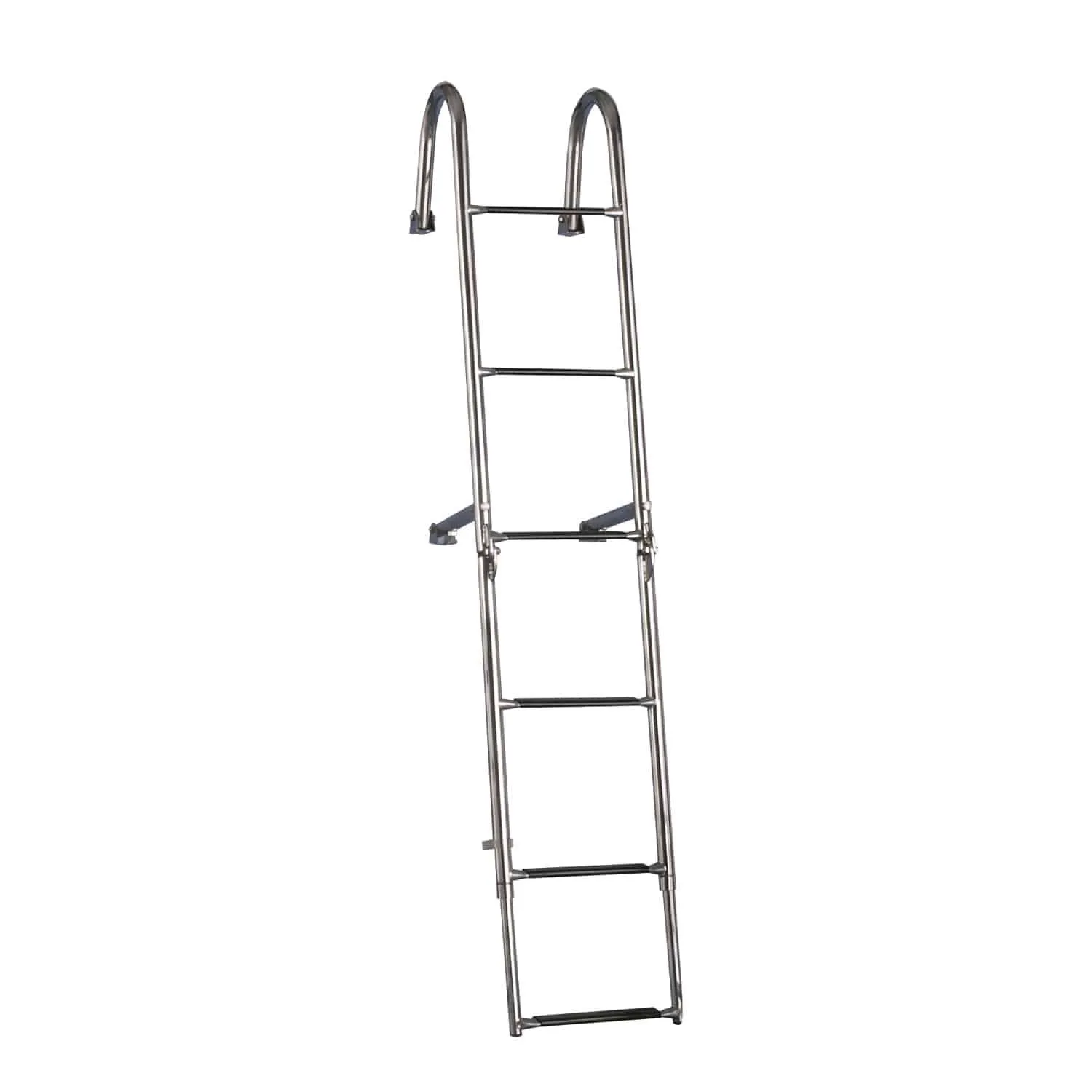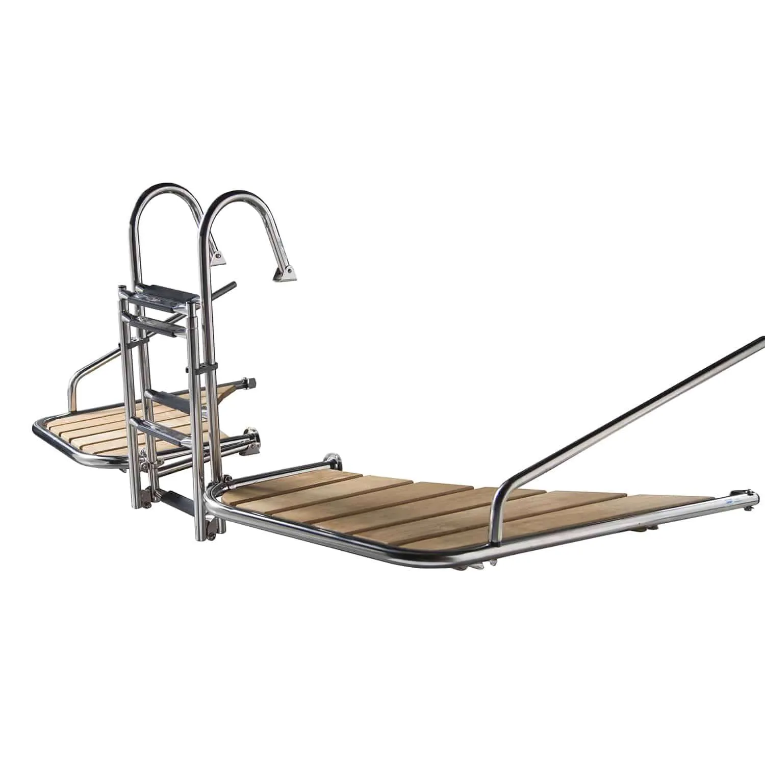 El diseño plegable de la escalera permite que se pliegue y despliegue fácilmente, ahorrando espacio cuando no está en uso y facilitando su almacenamiento a bordo.