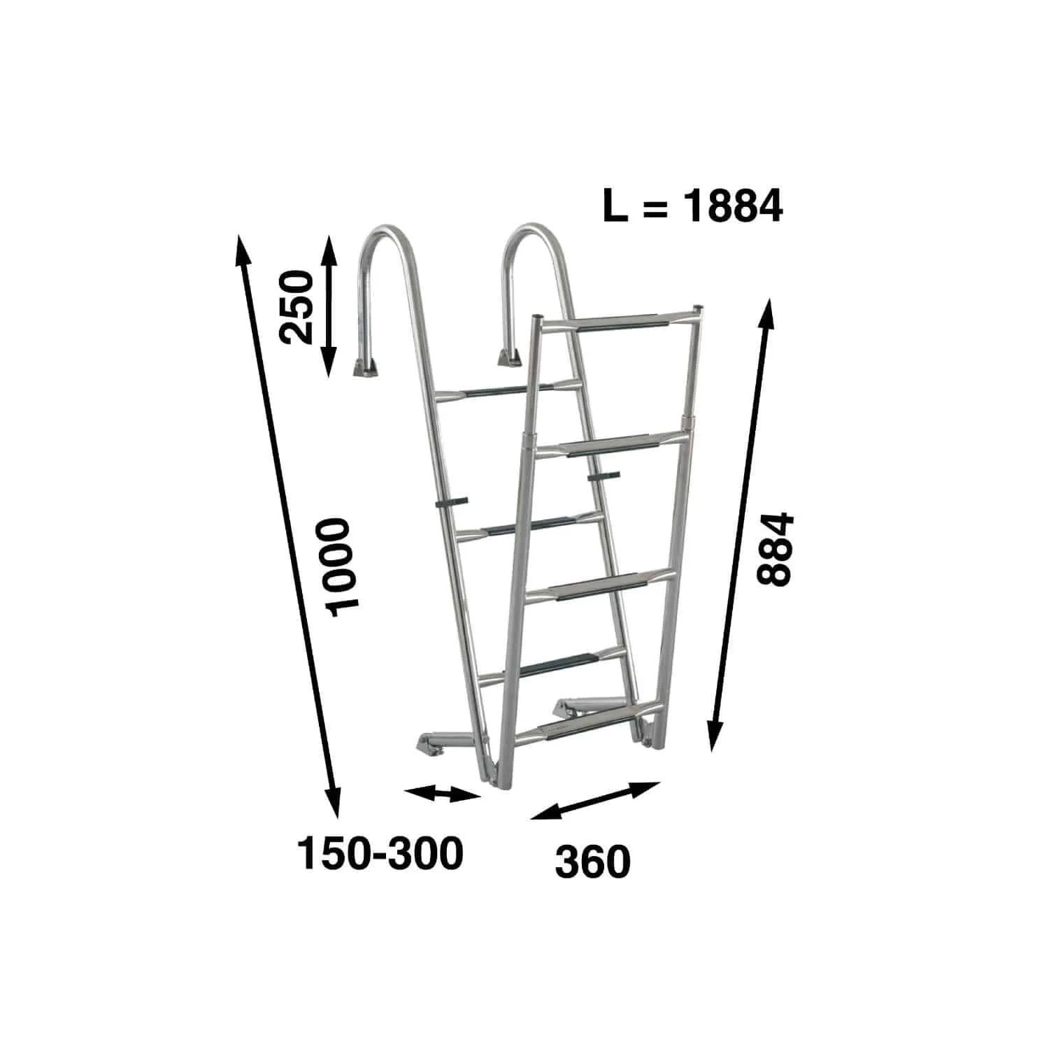 El diseño plegable de la escalera permite que se pliegue y despliegue fácilmente, ahorrando espacio cuando no está en uso y facilitando su almacenamiento a bordo de la embarcación.
