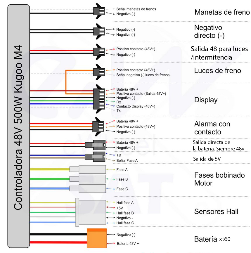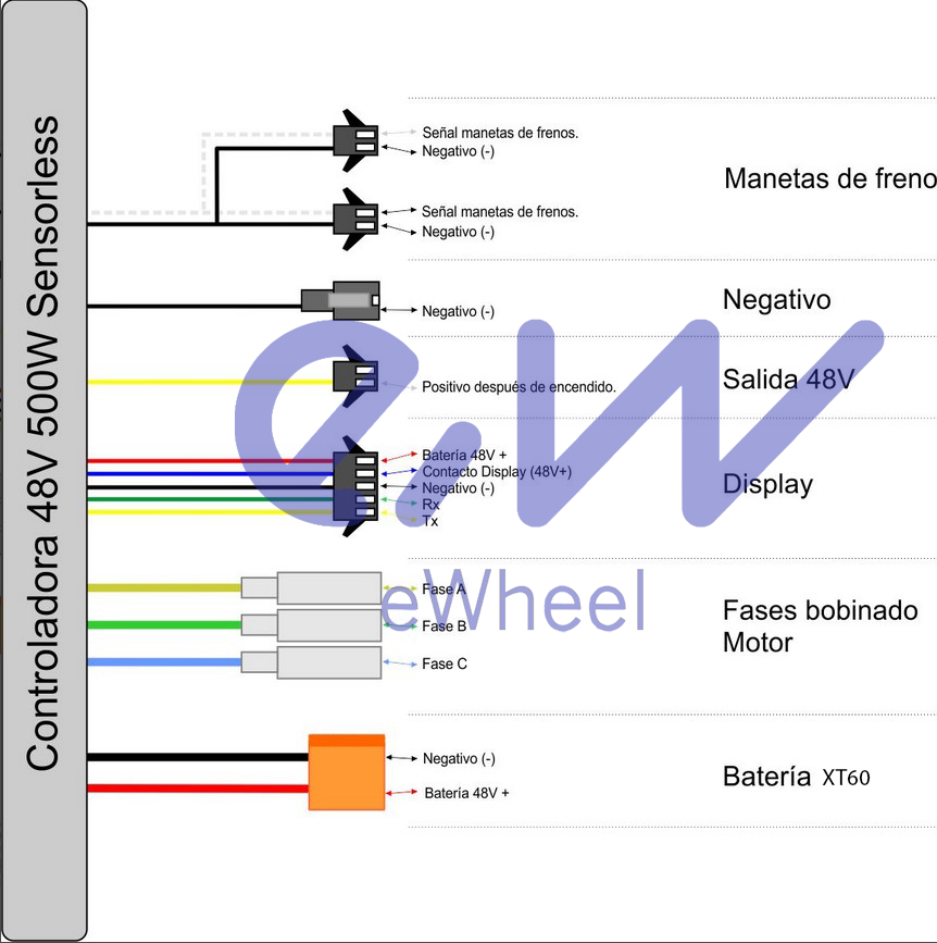Potencia nominal: 500w a 36v/800w a 48v