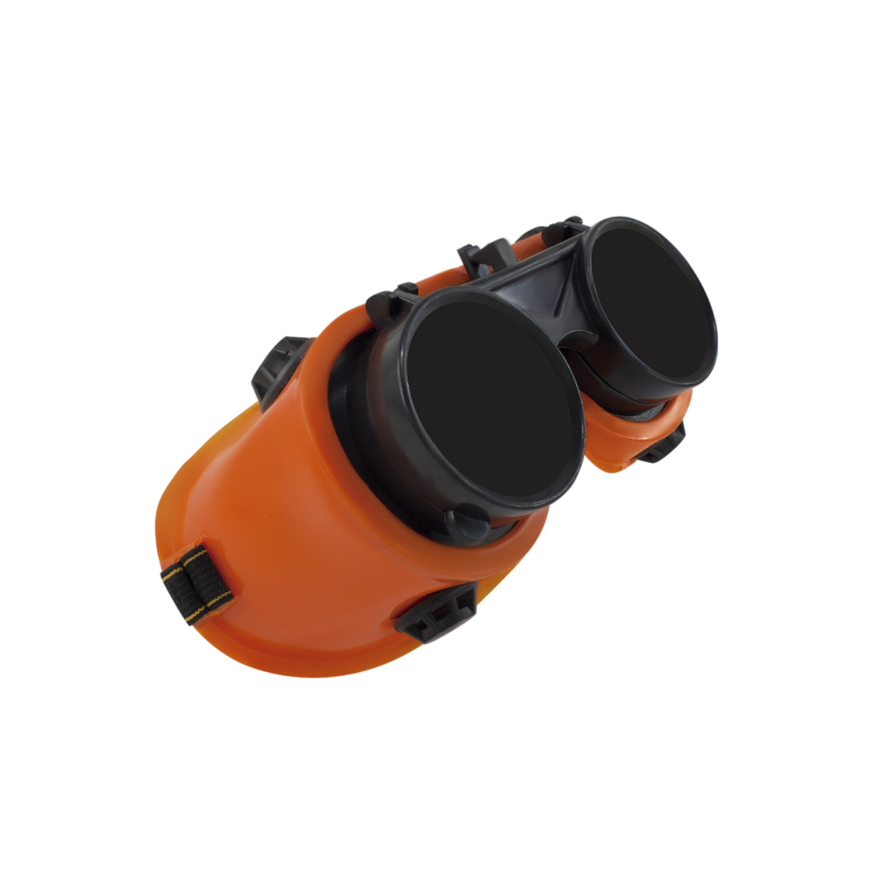 Lentes de seguridad para soldar naranja, fabricados en plástico y visores con lentes de protección autógena. Se utilizan para protección visual cuando se suelda con autógena y así evitar que una chispa caiga en los ojos