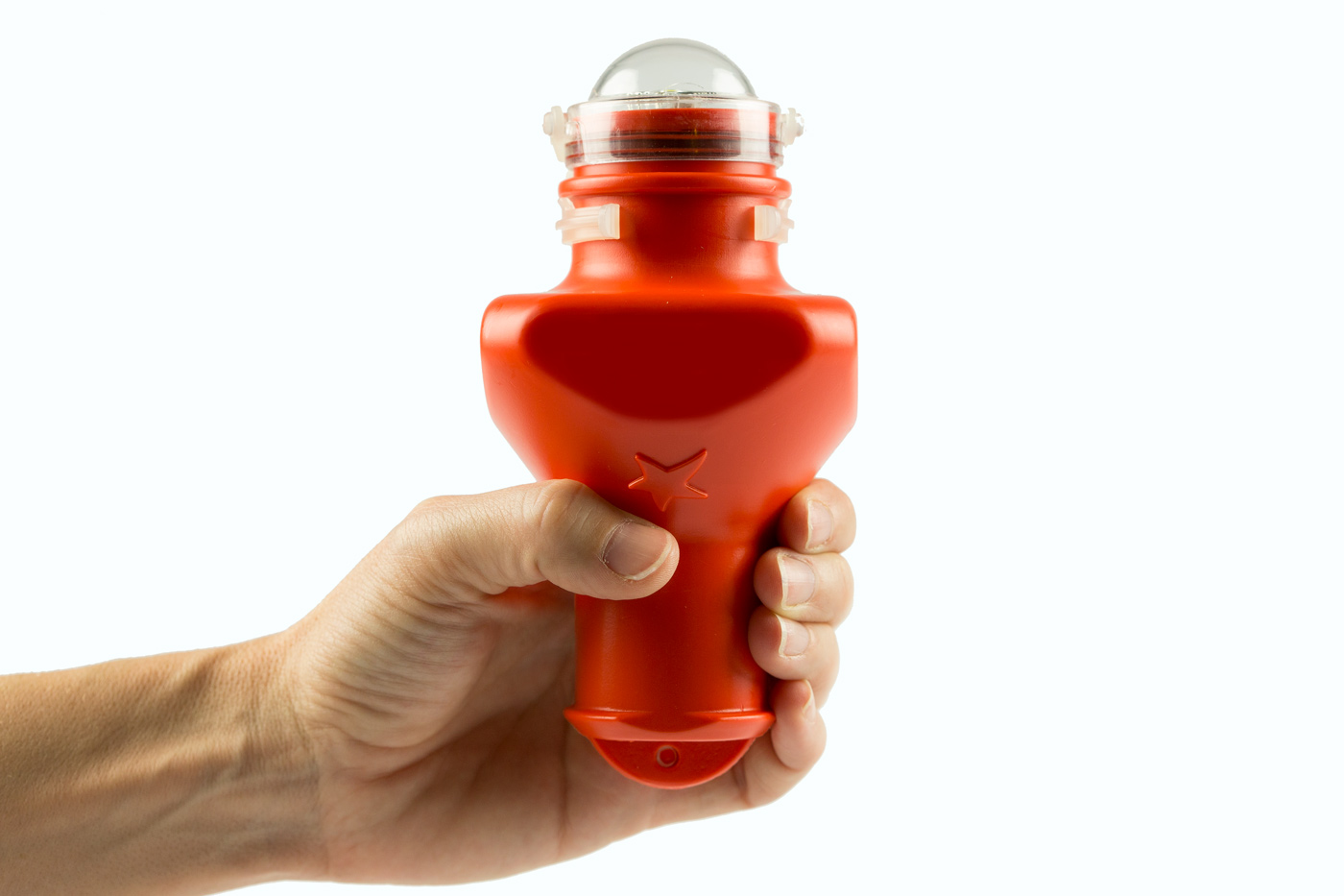 Tiene un arco de visibilidad de 360° y emite una luz centelleante blanca de 60 centellos por minuto con una duración aproximada de 8 horas. Se alimenta de una sola pila alcalina tamaño estándar tipo R-20 no incluida con el dispositivo.