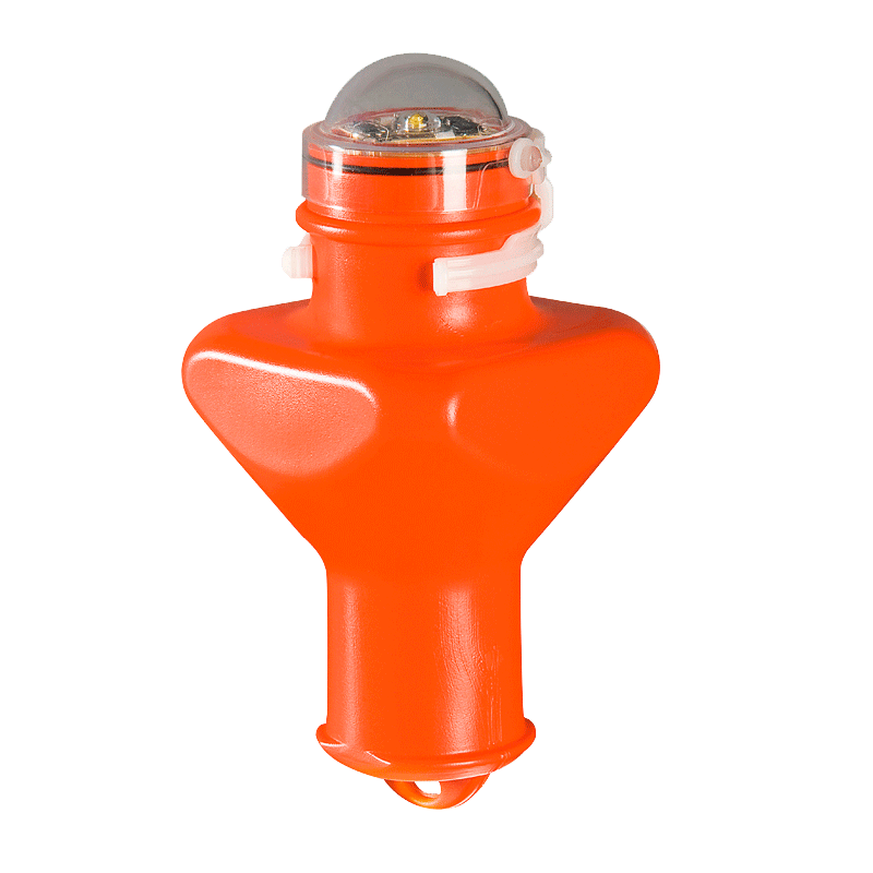 Luz flotante de emergencia LED para aro salvavidas o guindola de encendido automático por medio de interruptor a vuelco constantemente activo.