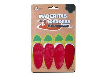 Maderitas para roedores con forma de zanahoria (contiene 4 piezas).