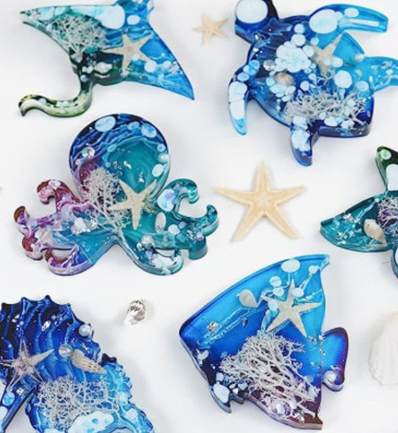 Molde de silicona con formas de animales marinos ideales para llaveros y colgantes, estos moldes están creados en silicona suave para resinas, fabricado con silicona profesional y libre de imperfecciones.