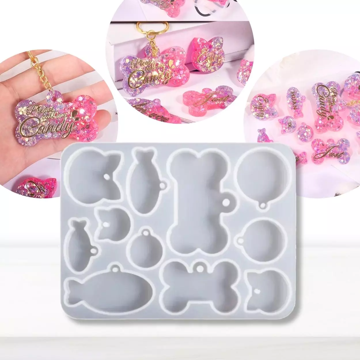 Este molde de silicona está diseñado para hacer hasta 11 tipo de placas identificativas para mascotas diferentes al mismo tiempo, rápido y ahorrando tiempo, se convertirá en increíbles manualidades de resina.