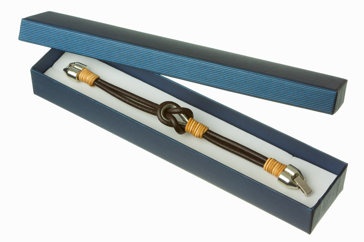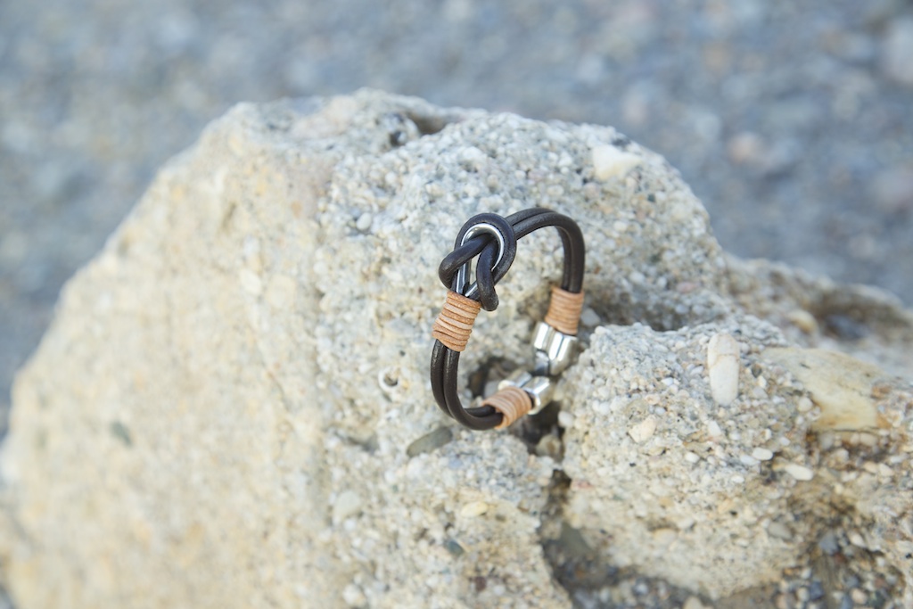 Las pulseras están elaboradas de forma artesanal con guardacabos de acero inoxidable, cuero tratado y cierre de zamak. Este material es una aleación de zinc con magnesio, aluminio y cobre, es hipoalergénico (libre de níquel) y resistente al tiempo y la oxidación.