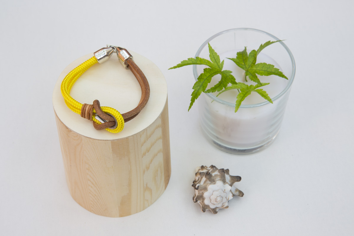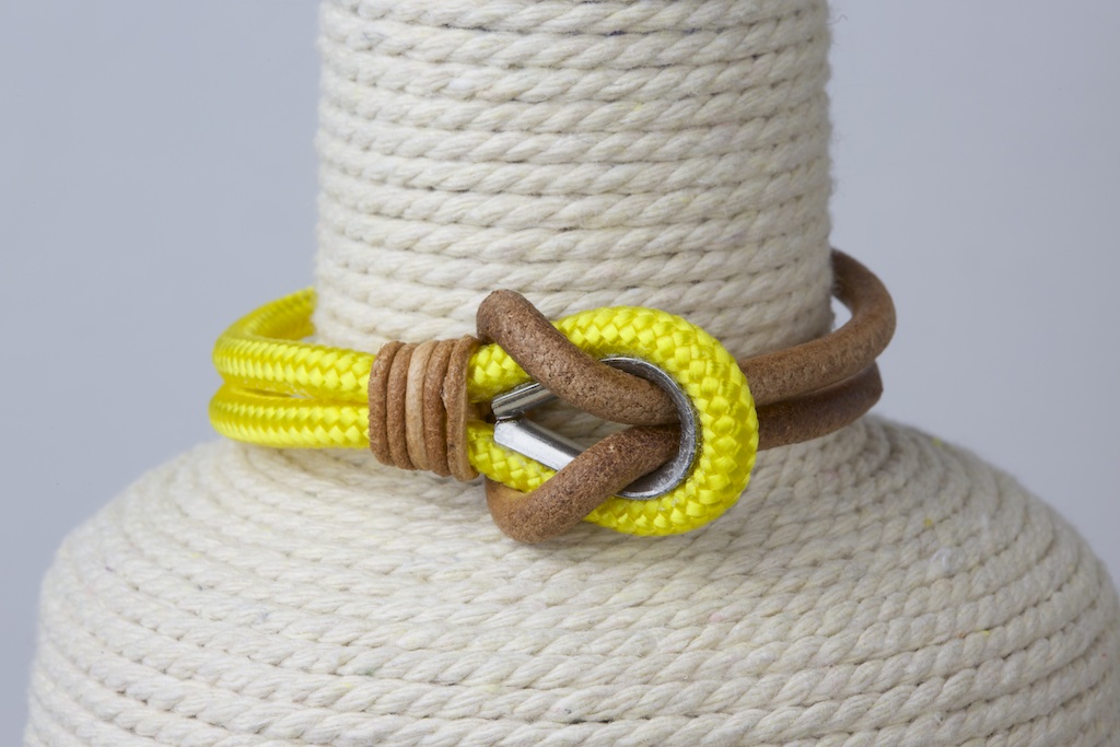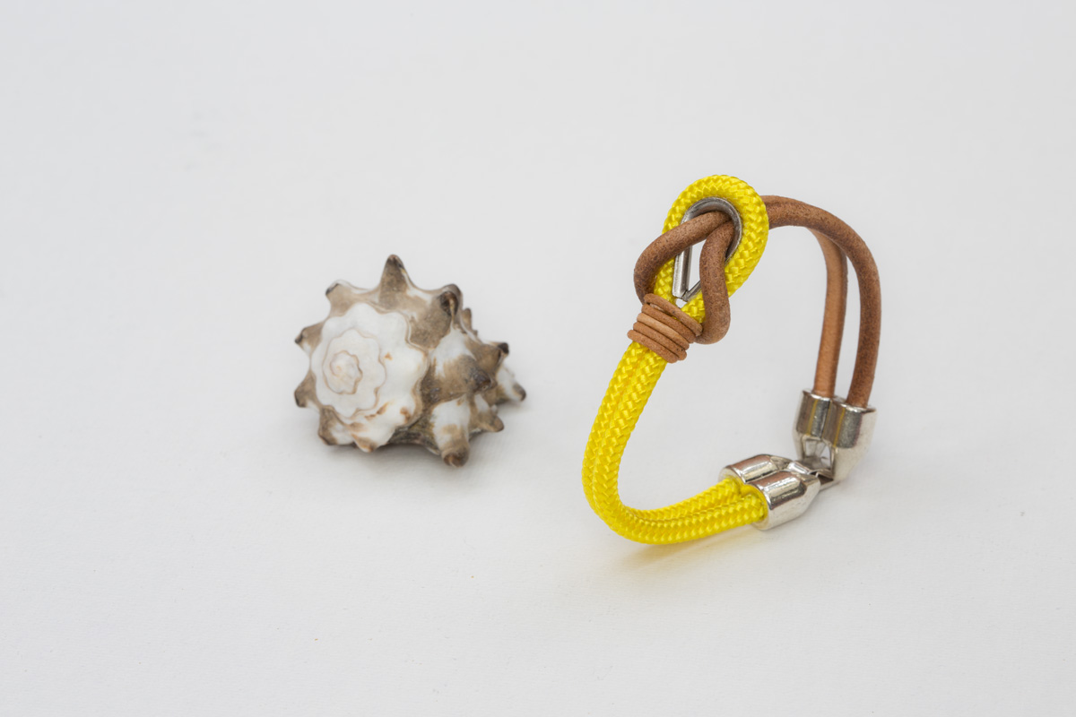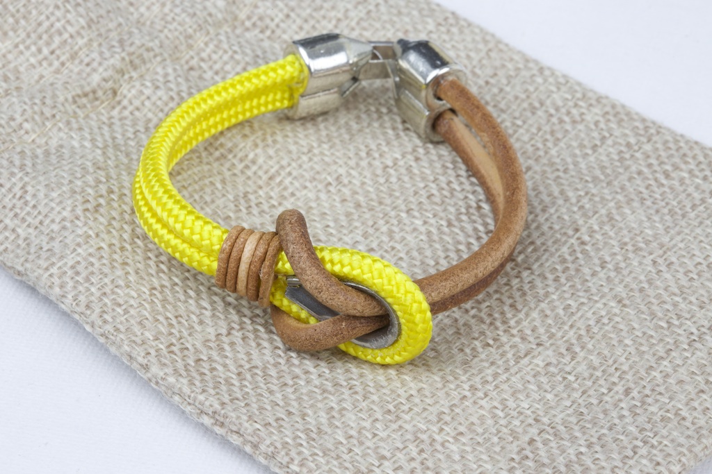 Las pulseras están elaboradas de forma artesanal con guardacabos de acero inoxidable, cabo marinero, cuero y cierre de zamak. Este material es una aleación de zinc con magnesio, aluminio y cobre, es hipoalergénico (libre de níquel) y resistente al tiempo y la oxidación.