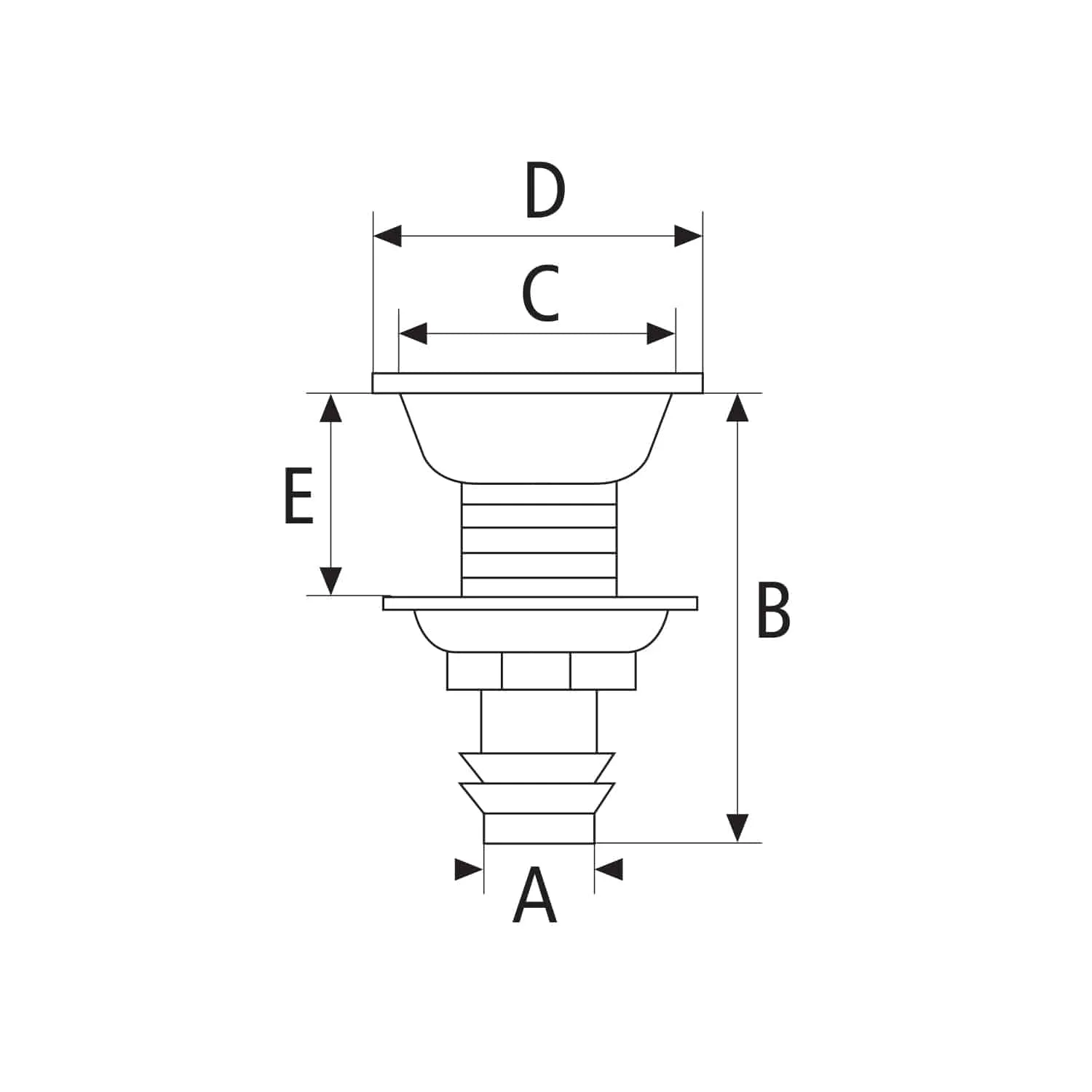Racor para evasión de gases empotrables en acero inoxidable AISI 316, electropulido