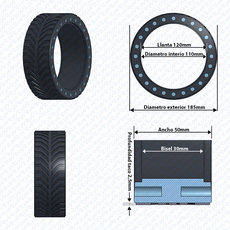 Incluye: Rueda maciza perforada medidas 8×2 pulgadas.