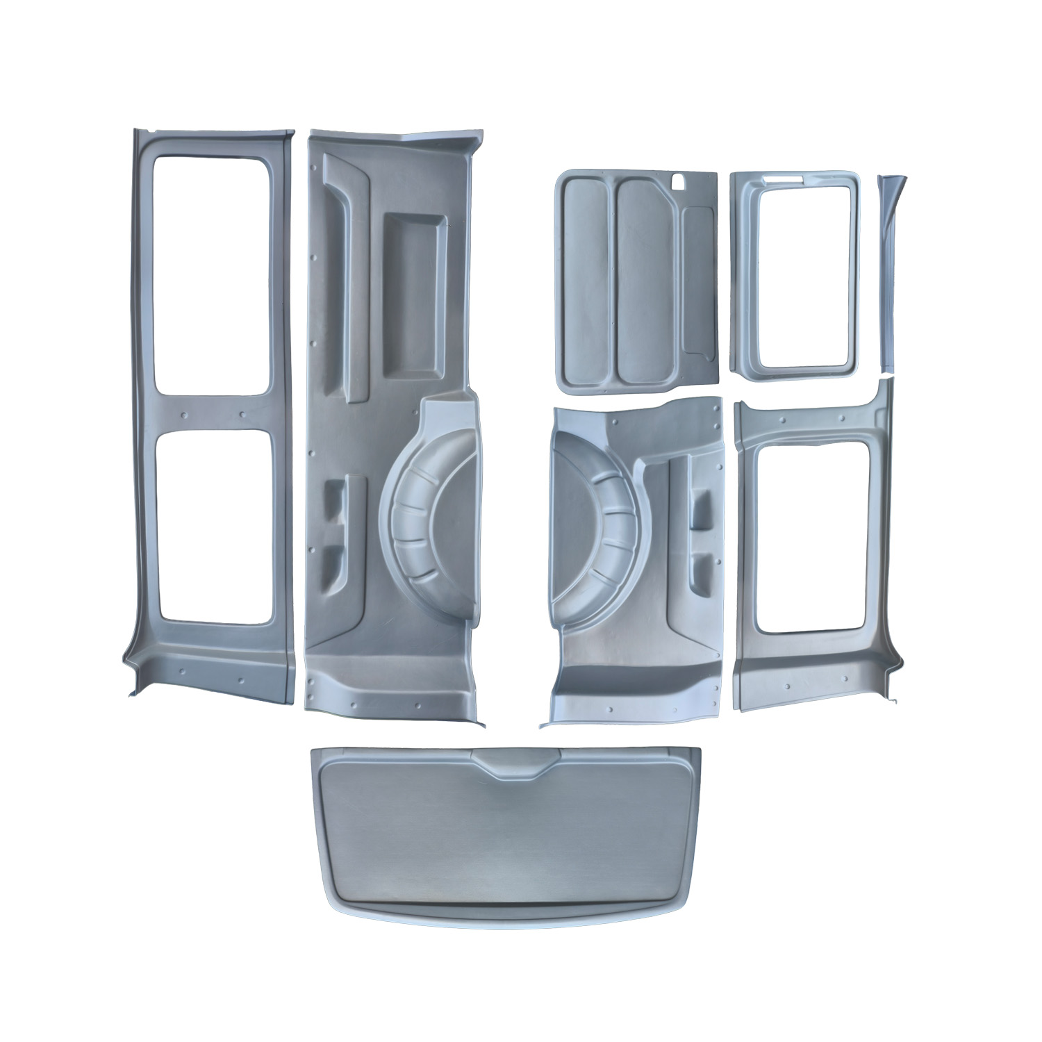 Incluye 1 set de 8 piezas realizadas a medida para revestir el interior de la furgoneta y transformarla a camper.