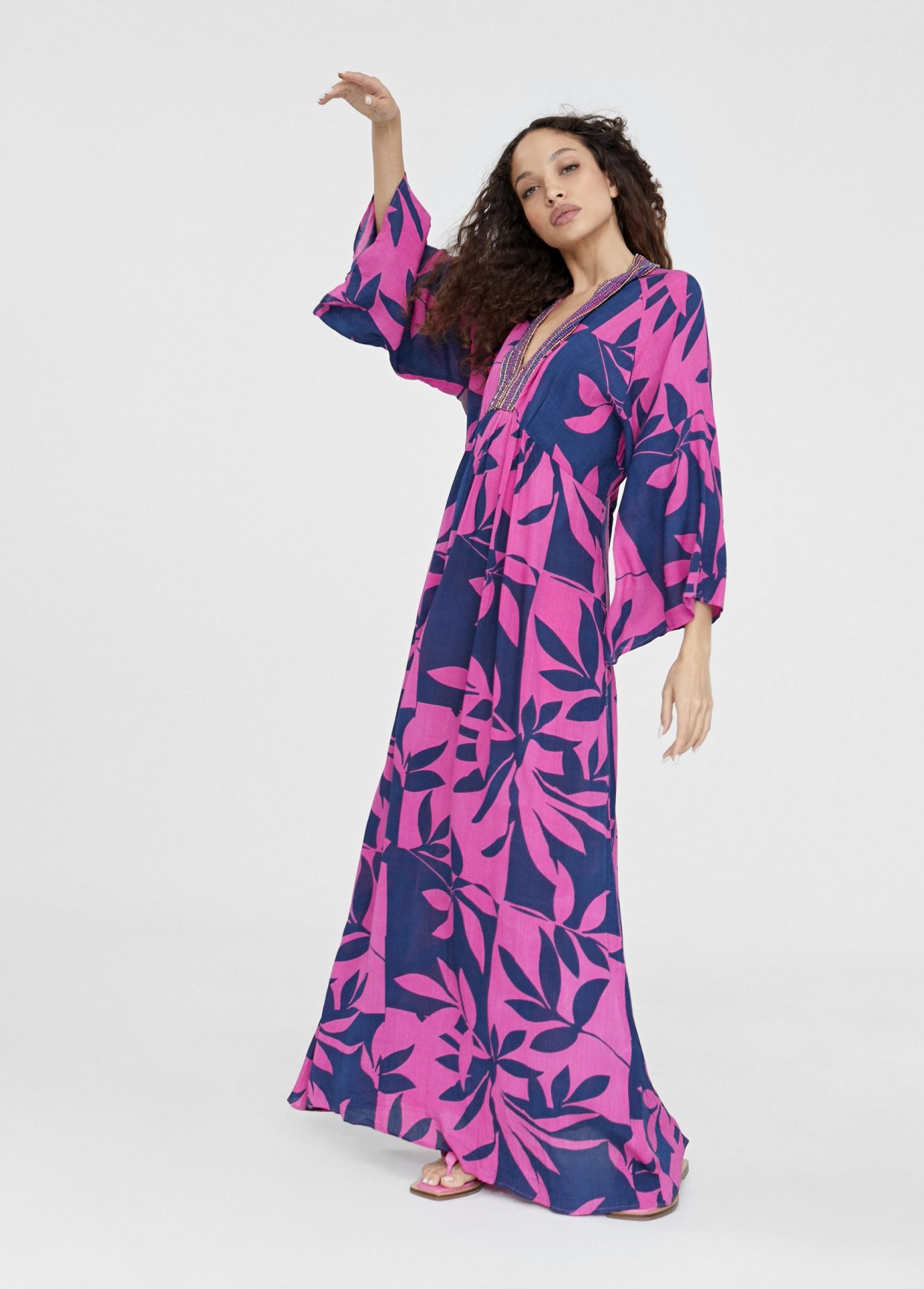 Vestido largo manga japonesa print floral Lola Casademunt